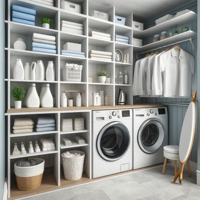 In the laundry room, efficient storage solutions are essential for keeping supplies organized and maximizing space utilization. Our custom closet solutions for laundry rooms are designed to streamline chores and enhance functionality. From dedicated shelving for detergents, fabric softeners, and cleaning agents to hanging rods for air-drying clothes, our designs cater to the unique needs of each household.